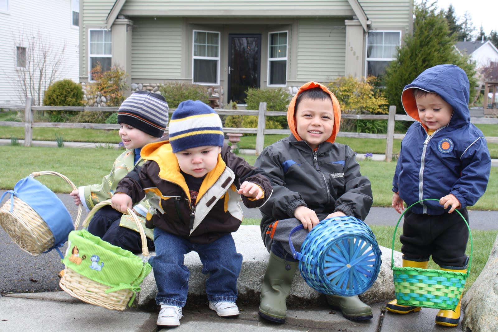 They had the hunt divided into age groups and started with zero thru three year olds. So that included both of our boys. Look at the chaos that was their hunt...