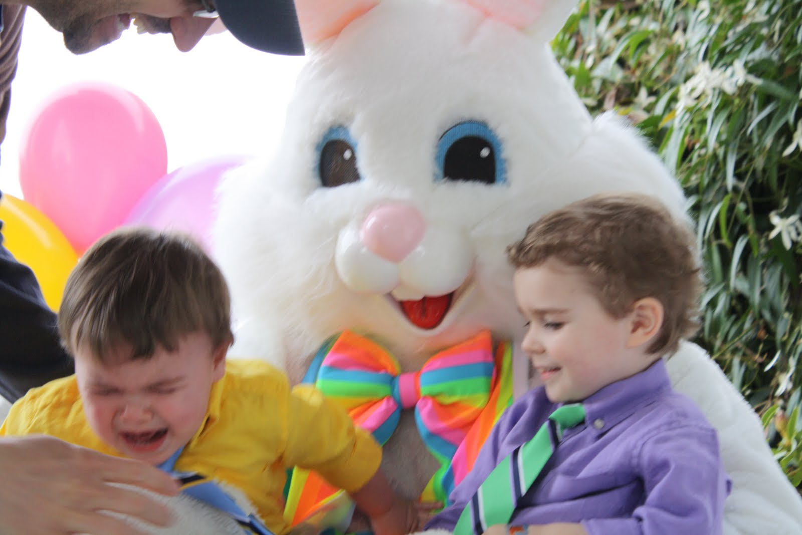 Home from the egg hunt for a quick lunch and changed the boys into their "Easter Outfits" to go see the Easter Bunny.