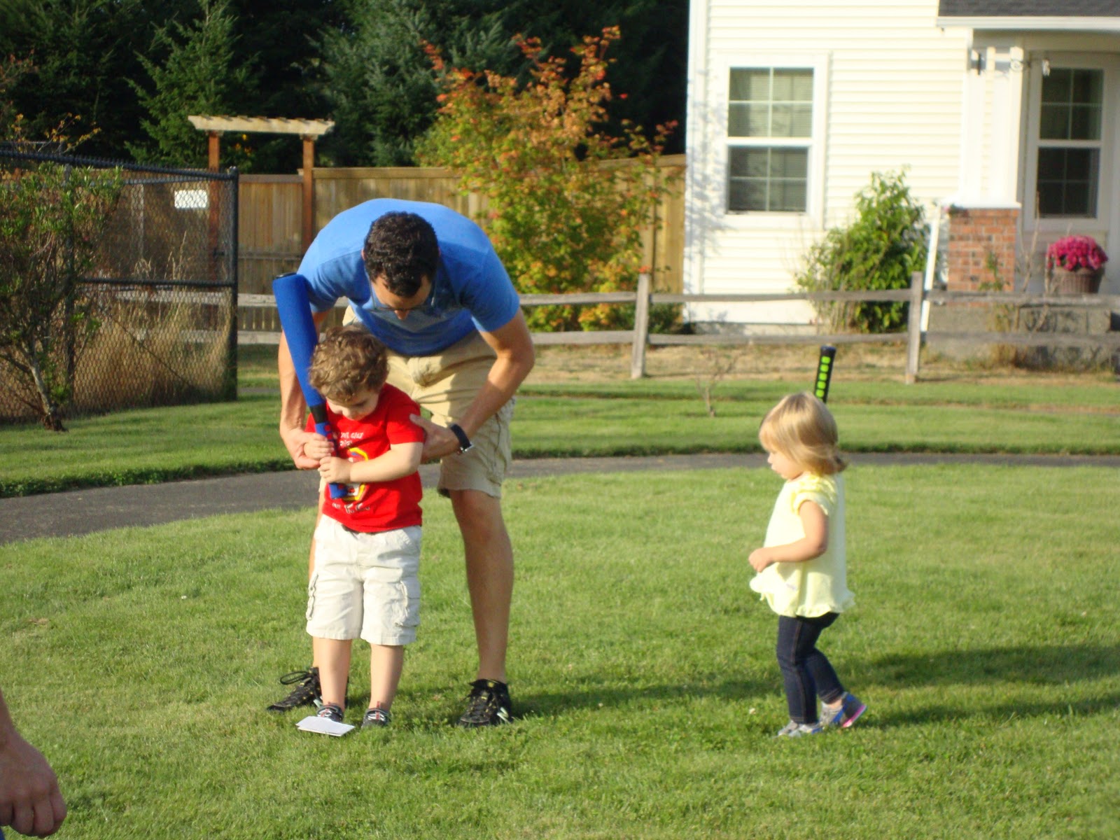 I wish I had a count of how many pitches Kyle threw to him this summer. For a long time he started each swing by crouching down in place letting out a big grunt and saying "keep your eye on the ball." Made me laugh on the inside every time. I couldn't laugh on the outside because he was quite serious...nothing funny about it at all in his book.